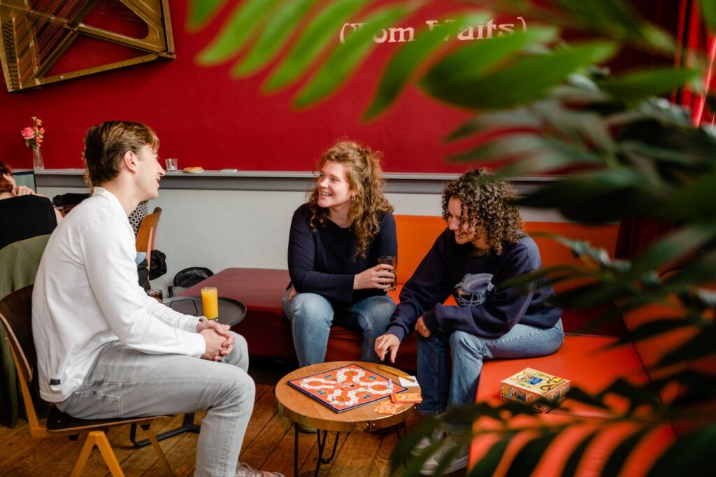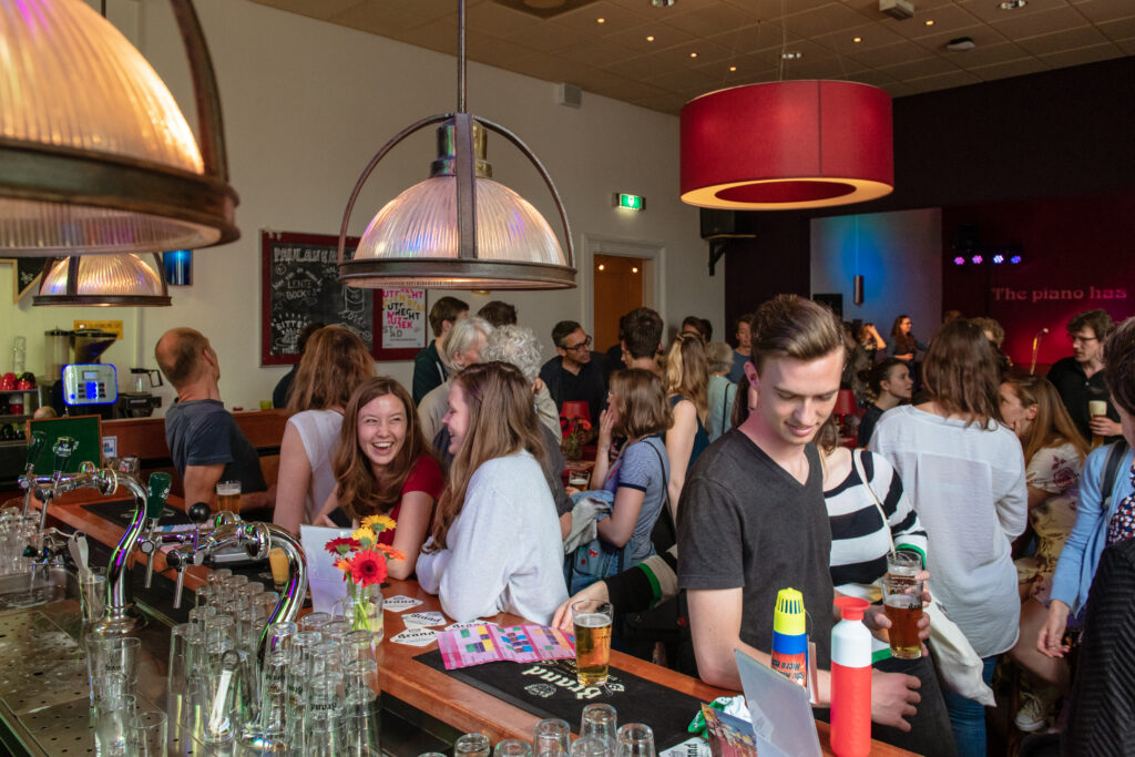 ’s Avonds tussen 20.00 en 00.30 transformeert Parnassos Cultuurcafé tot een levendige ontmoetingsplek. De verlichting dimt, de muziek speelt en gezelligheid neemt de ruimte over. Het is de perfecte plek met ongedwongen sfeer om af te spreken met vrienden of natuurlijk om voor en na je cursus een borrel te komen doen. Ook worden er regelmatig toffe gratis workshops, optredens en events georganiseerd. Open podium, karaoke, pub quiz, anyone? Of je nu komt om te studeren, te chillen of een gezellige avond te hebben, iedereen is welkom. Tot snel!